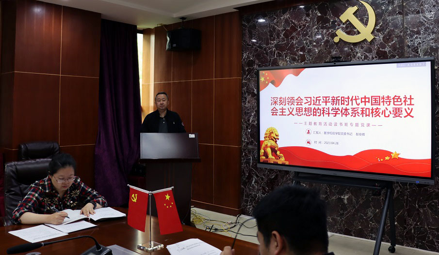 根据公司党委要求。4月21日,在北校区基础2号楼三楼会议室,威廉希尔体育党委书记彭安辉以“深刻领会习近平新时代中国特色社会主义思想的科学体系和核心要义”为题为教工党支部上主题教育专题党课,教工党支部全体党员及各科室负责人聆听。