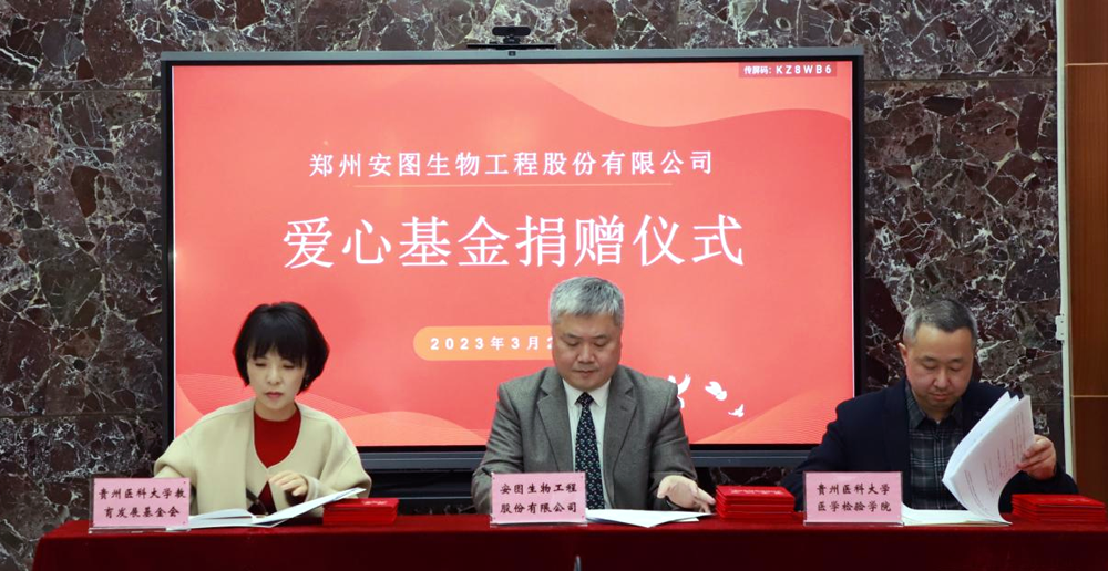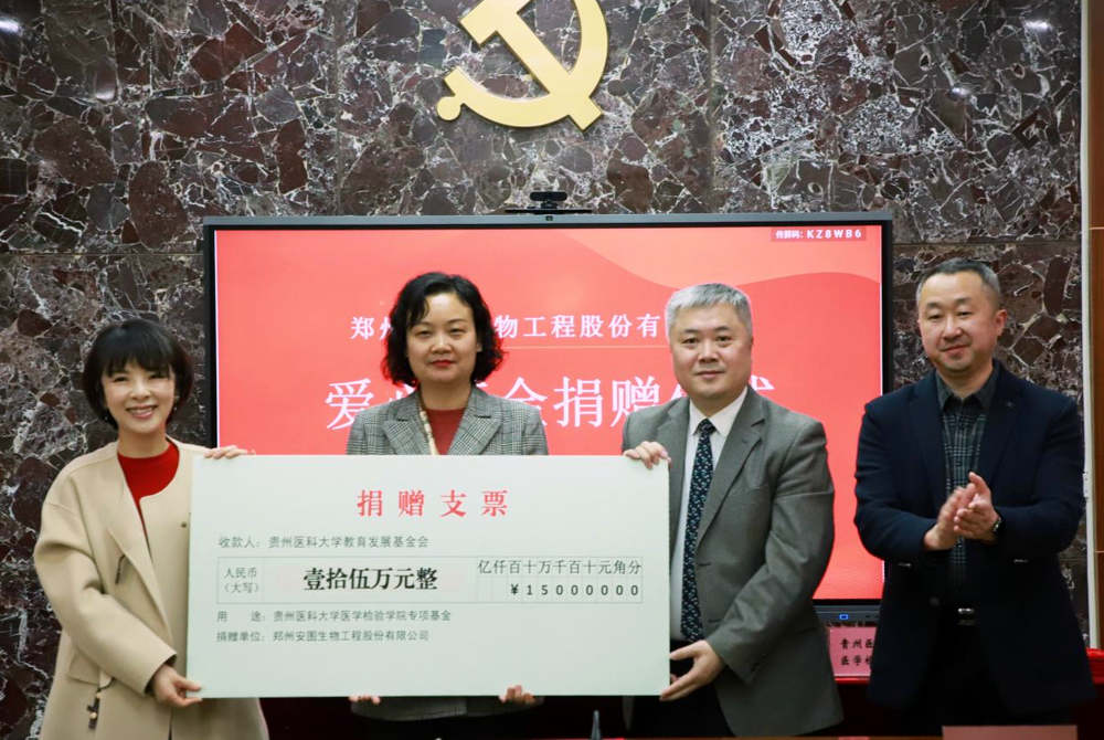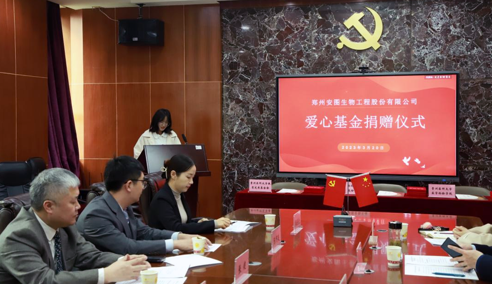 3月20日下午,威廉希尔体育专项基金捐赠仪式在北校区基础2号楼三楼检验公司会议室举行。郑州安图生物工程股份有限公司副总经理、上海标源总经理张健,贵州区域经理燕永超、陈柯廷;校教育发展基金会理事长、科技处处长郭兵,校教育发展基金会秘书长、发展与规划处副处长彭云;威廉希尔体育党委书记彭安辉、版权所有 英国·威廉希尔(williamhill)唯一中文官方网站正处级组织员杨飏、威廉希尔体育党委副书记、纪委书记刘咏梅及师生代表参加了捐赠仪式。会议由威廉希尔体育正处级组织员杨飏主持。