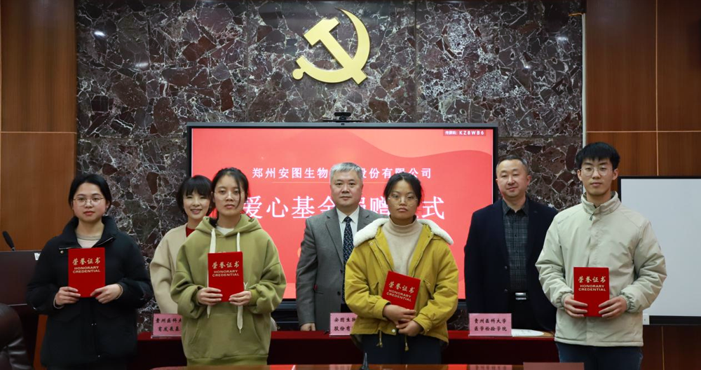 会上,郑州安图生物工程股份有限公司安图生物副总经理张健与威廉希尔体育教育发展基金会秘书长彭云、威廉希尔体育党委书记彭安辉共同签订捐赠协议,并向获得2022年度“威廉希尔体育教育发展基金”奖学金的同学颁发获奖证书并合影留念。