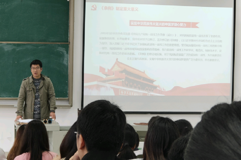 仪式结束后,苏曦以新修订的《中国共产党统一战线工作条例》为主题,从制定的重大意义和条例内容详细解读两个方面为全体学员上了本期培训班第一次党课。
